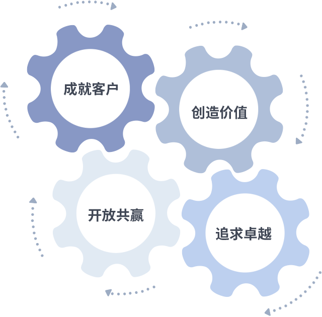 成就客户是一切决策的出发点,创造价值是衡量所有工作的标准,追求卓越是人生就是博·z6尊龙做事做人的态度,开放共赢是人生就是博·z6尊龙的格局也是最终的结果。价值观的齿轮环环相扣,推动着组织里的每个人不断向前。